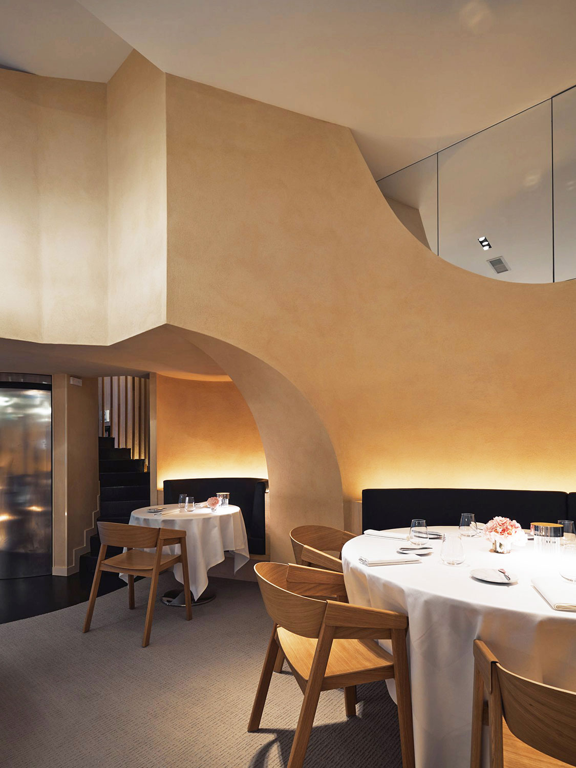 Au restaurant Ortensia, au cœur de Paris (75), l’enduit de finition Argilus en teinte Crème enveloppe les murs d’une douceur subtile et raffinée.
